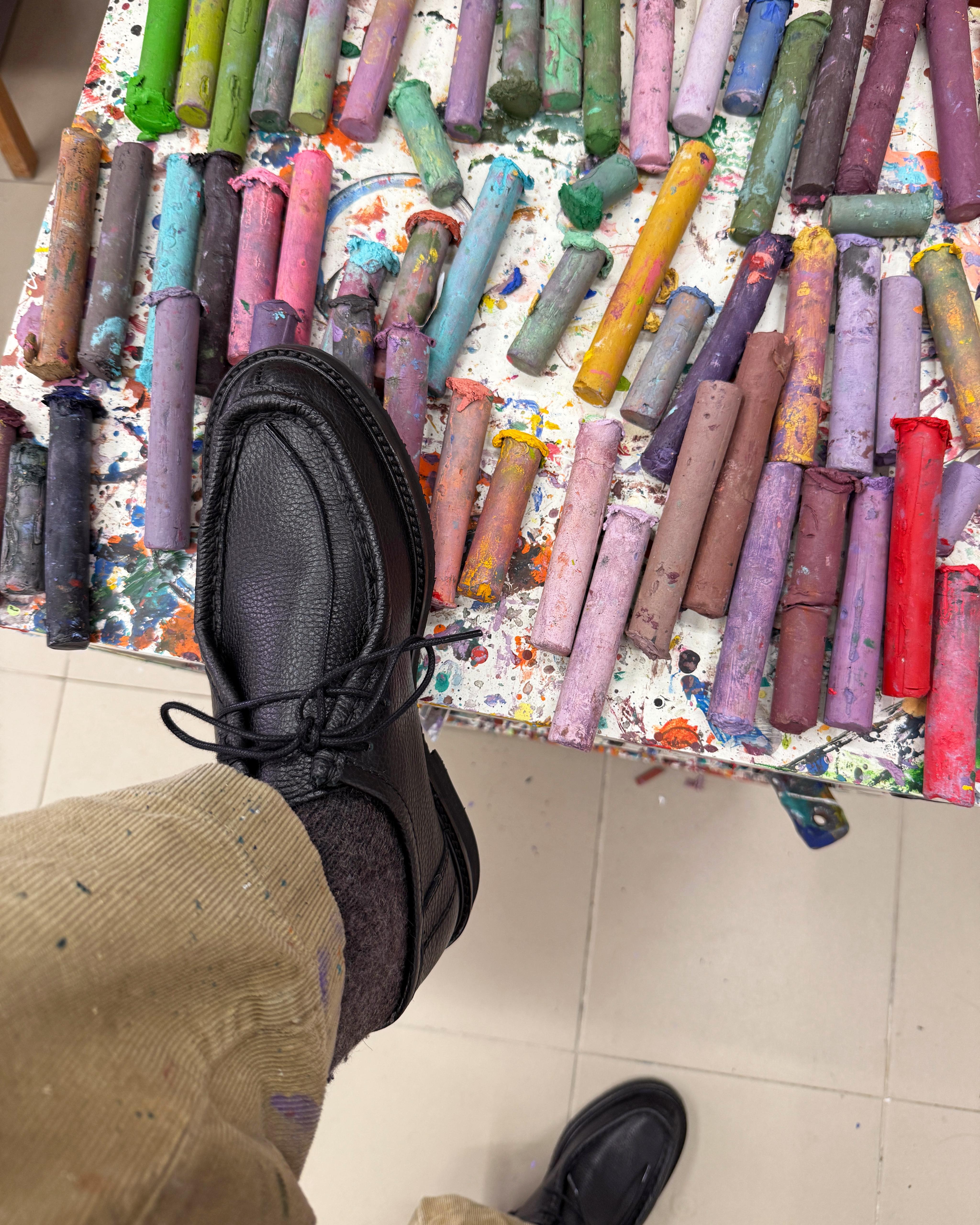 Guided by intuition, his choices move away from styling and towards expression. Each piece is selected for how it feels rather than how it fits, allowing texture, shape and detail to echo the same visual language found in his work. The result is a quiet, effortless conversation between canvas and clothing — instinctive, personal and deeply connected to his creative universe.