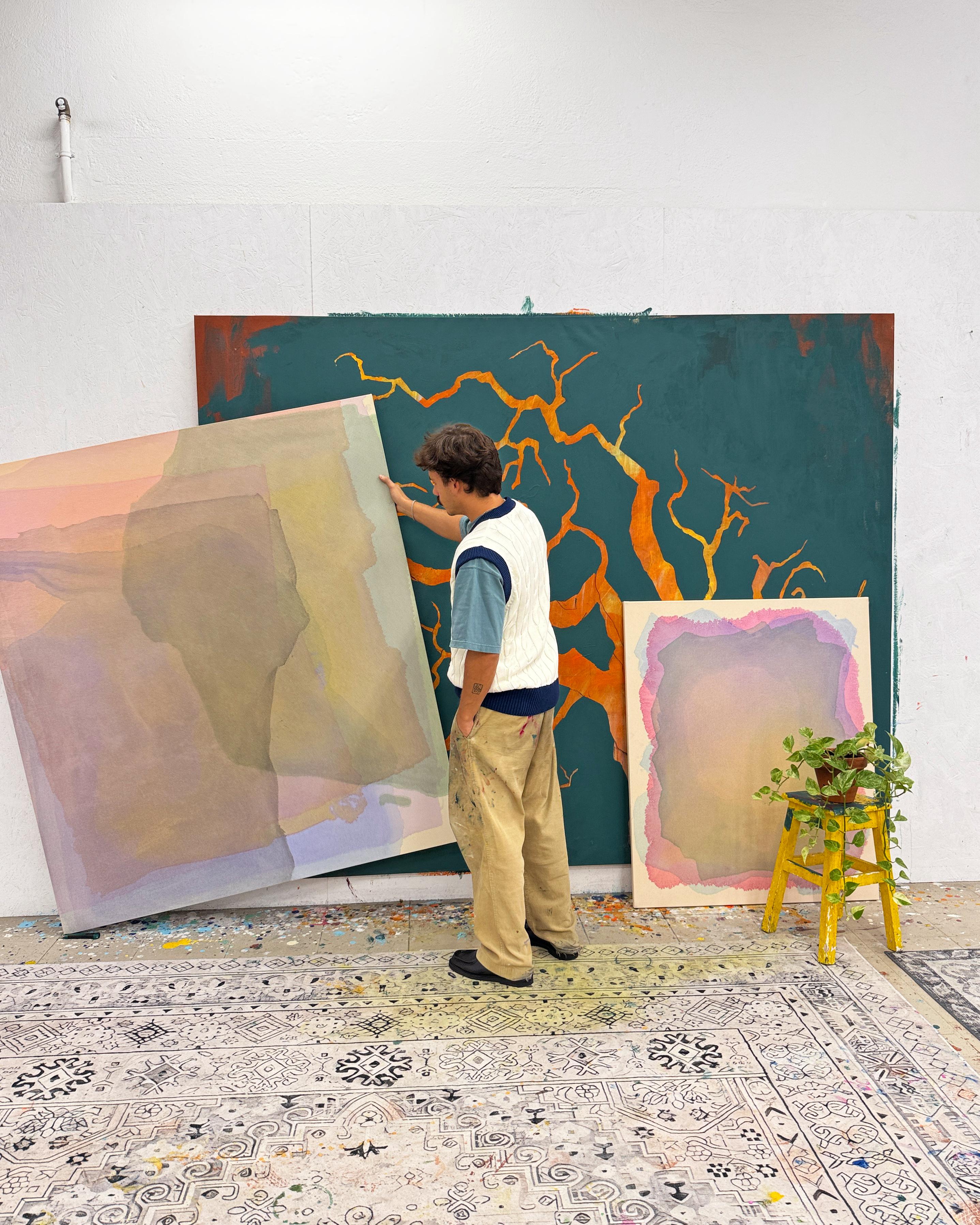 Born in Lisbon in 1998, Guilherme began painting in 2018 with no formal training, learning through experimentation and intuition. After completing a Master’s degree in Electrical and Computer Engineering in 2021, he chose to fully dedicate himself to painting, working today from his studio in Lisbon.