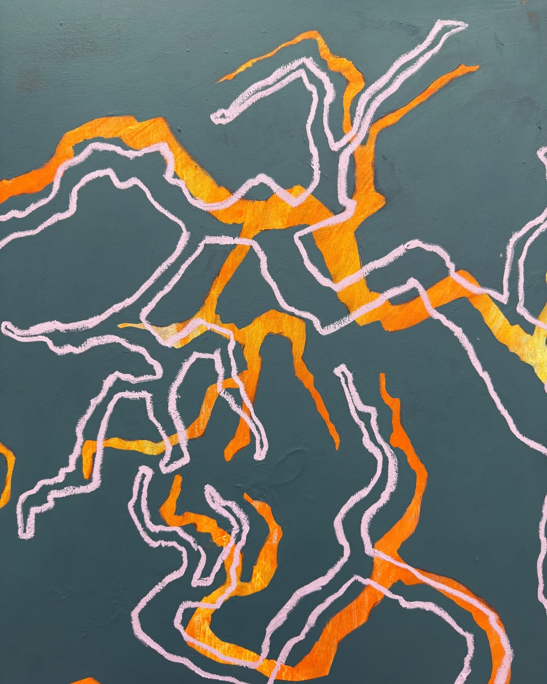 His practice lives in movement. Mainly abstract, with occasional figurative and surreal explorations, his work reflects a philosophy rooted in living in the present moment. Vibrant colours, mantra-like repetitions and dynamic gestures give his paintings a sense of rhythm - almost as if they’re in constant motion.